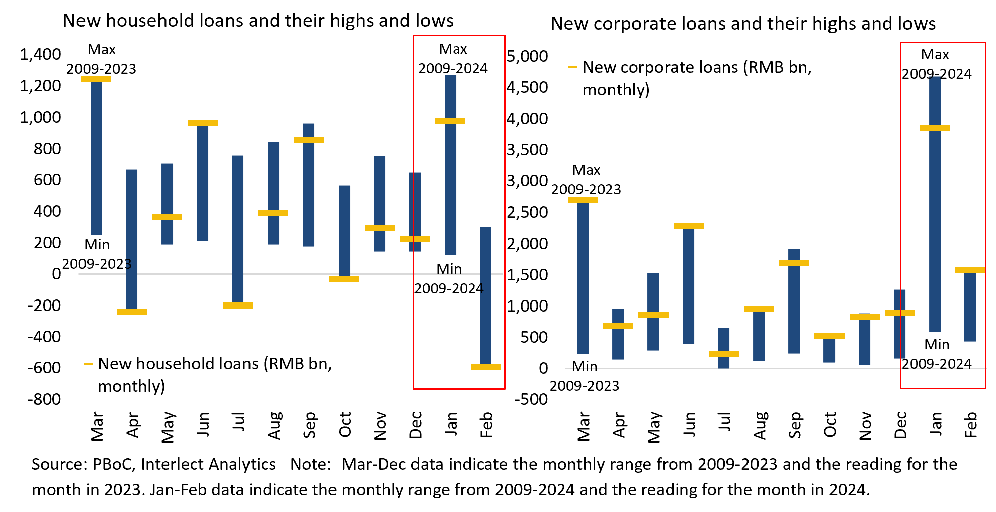 Household loans, on the other hand, contracted sharply and posted their worst February going back to at least 2009. Both short-term and long-term loans fell substantially, suggesting continued subdued demand for consumption and home purchases. This points to a continuation of last year’s trend, with borrowing demand still largely coming from corporates, while household appetite remains lacklustre.